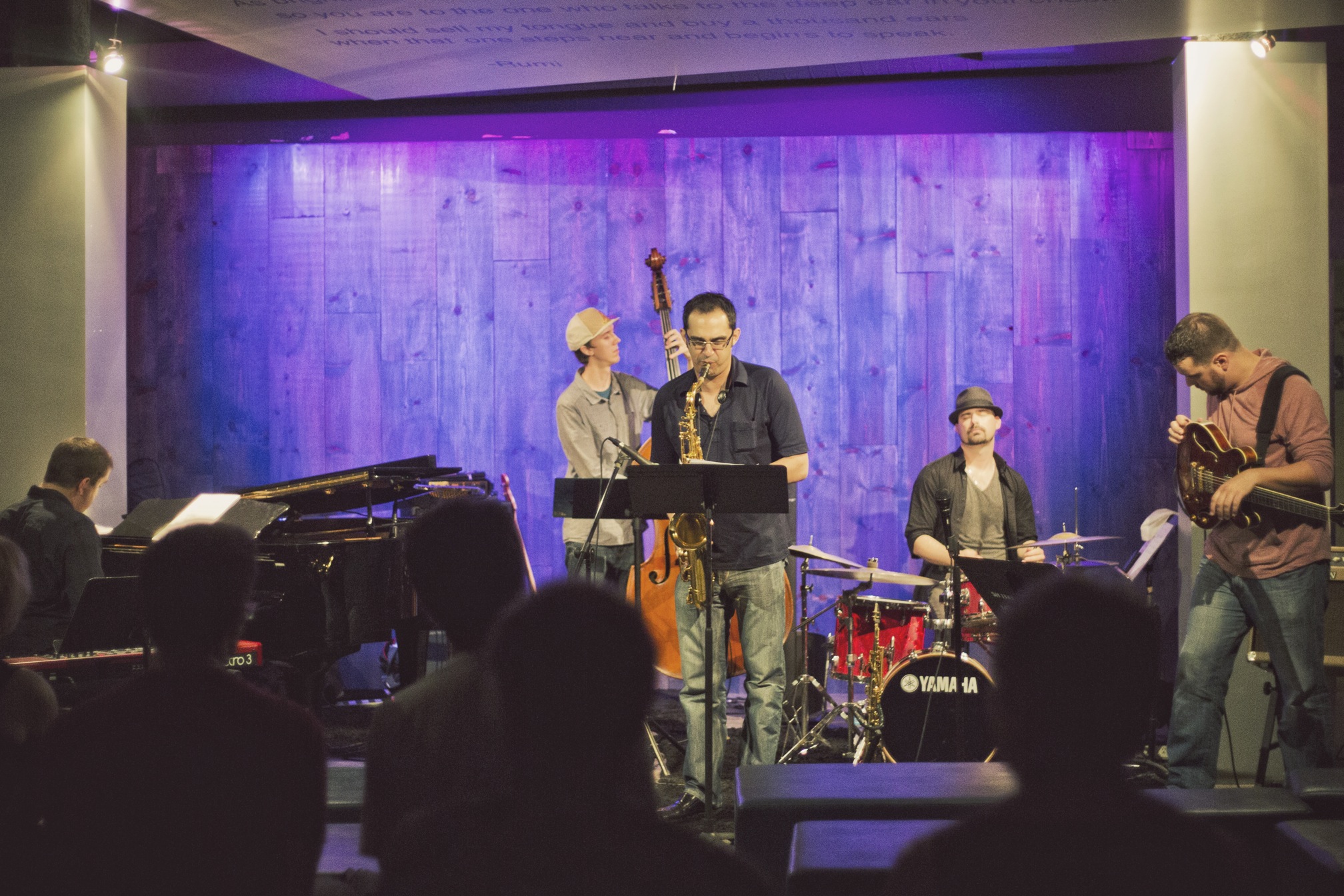 Earlier this month I went downtown to the Blue Whale bar to see my friend (and awesome guitar teacher) perform in his jazz outfit: The Matt Yeakley Group. The band is comprised of Matt Politano on Piano, Zane Musa on Sax, Cooper Appelt on Bass, Aaron McLendon on Drums, and obviously, Matt Yeakley on Guitar. The guys have been playing together since the fall …and what a coincidence… they play every Monday at the Falls in downtown, Los Angeles. Getting the chance to really dig deep into their grooves, The Matt Yeakley Group brought in a crowd of friends and jazz enthusiasts who listened quietly but excitedly during their 2 hour set. I can’t say I know enough about jazz to really describe the gig, but as someone who doesn’t regularly listen to jazz, or think to, I was extremely impressed and thoroughly entertained. It was so satisfying to see a group of remarkable young musicians who were so proficient at their instruments and who have joined together to perform intricate busy pieces with unhinged solos. And I could go on for hours about how devastatingly good-looking Matt Yeakley is… but I’ll save it.